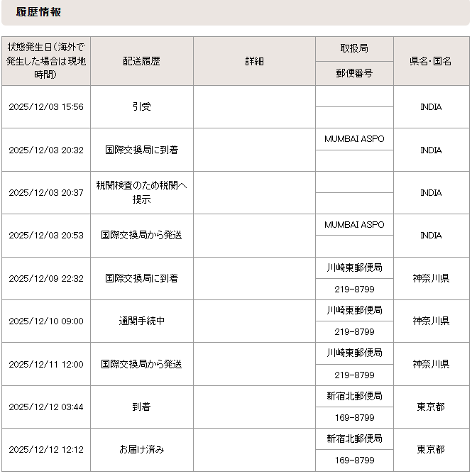 発送方法(郵便)2026年1月1日よりInternational Trucked Packet Service ( ITPS ) にて発送